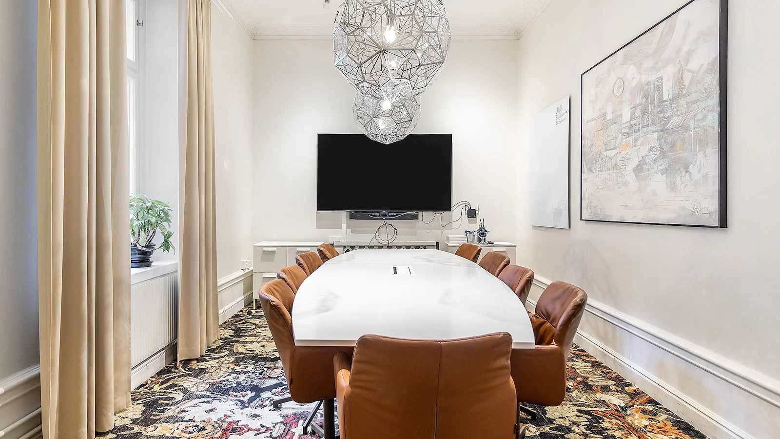 Lokalen kan möbleras i styrelsesittning 10 personer. Kontakta oss så hjälper vi er att hitta den bästa lösningen.